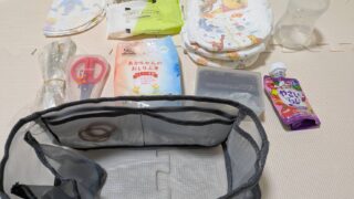 2歳児との買い物・公園・外食に役立つお出かけ持ち物リストを紹介。おむつやふきん、おやつ、水筒など我が家が実際に持ち歩く最低限かつ便利なセットをまとめました。