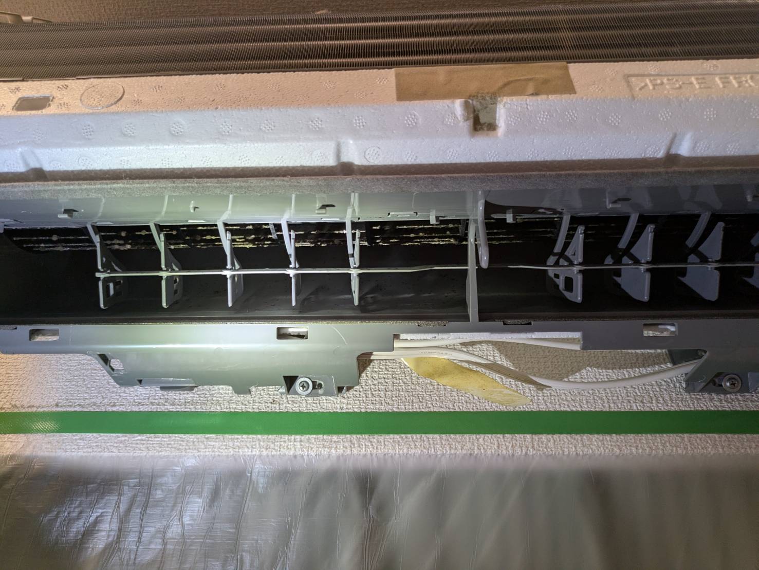 2台合わせて、だいたい3時間ほどの作業で終わりました。基本的には業者さんがひたすら頑張って作業いただいているので、私たちが何かする必要はありません。洗浄前と後のエアコン内部の様子を見せていただいたくらいです。