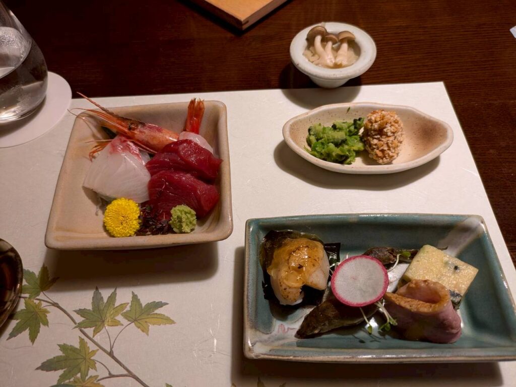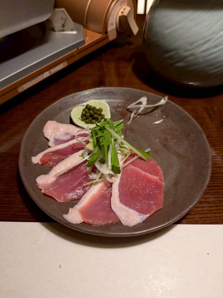 大人は、お刺身や鴨しゃぶなど、順番に運ばれてきます。