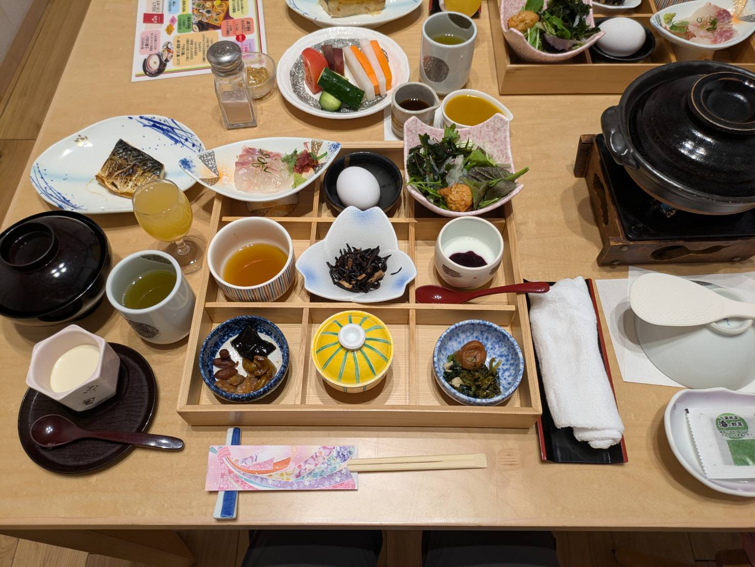 こんな感じです。サラダから各種小鉢、炊き立てごはんに、伊勢海老の出汁がたっぷりきいたお味噌汁と大満足です。お味噌汁とご飯はおかわり可能できます。
