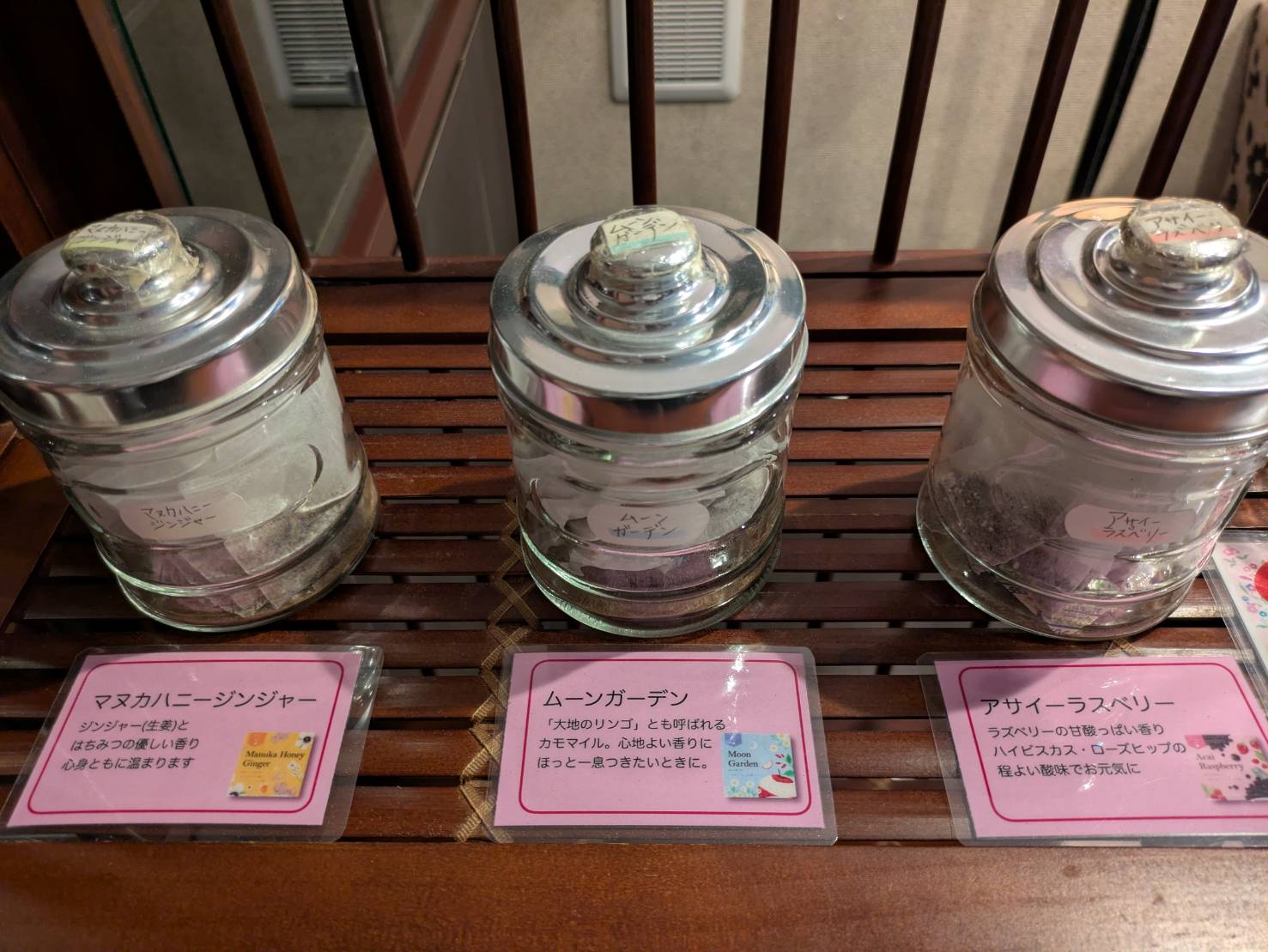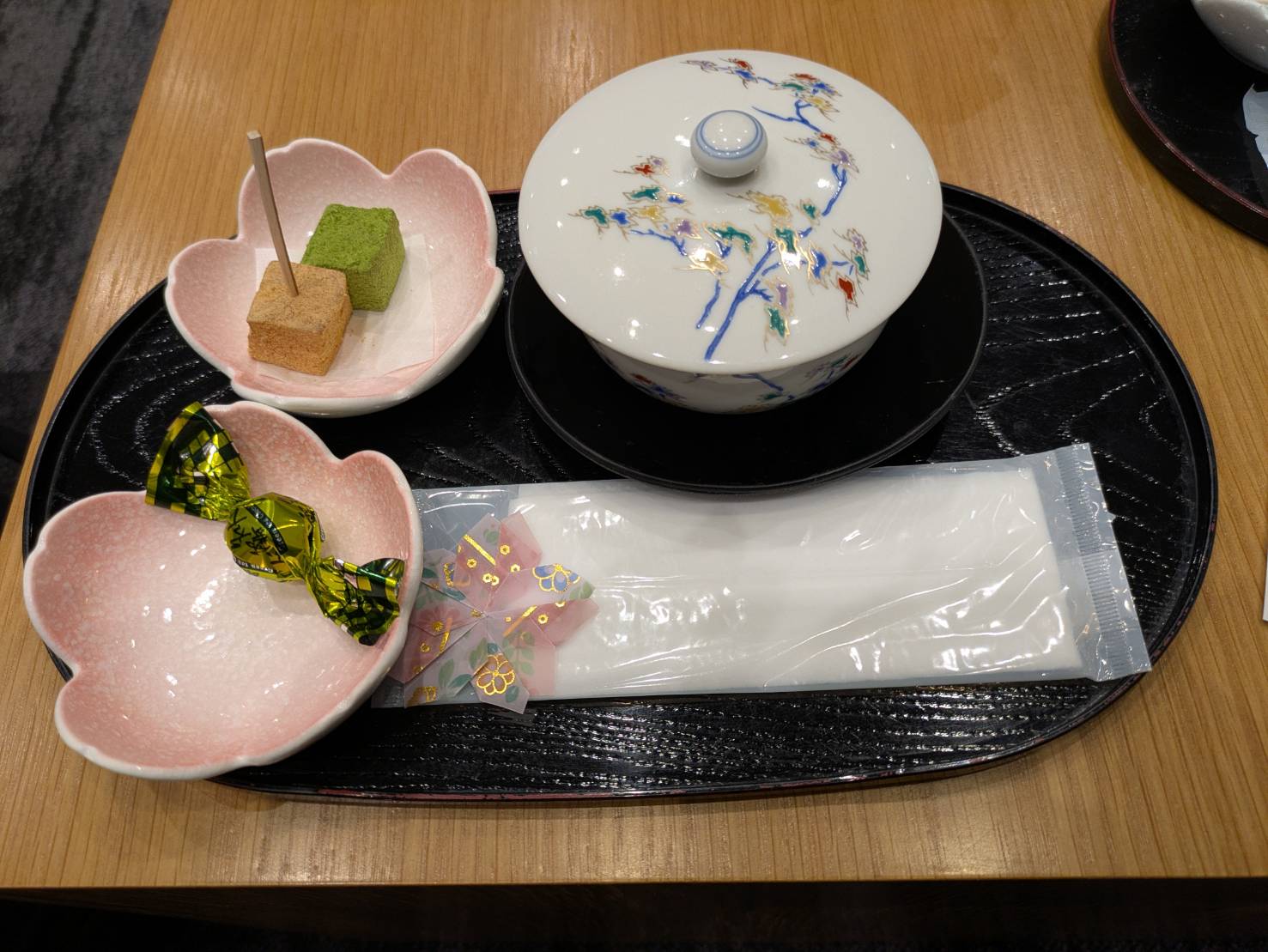 チェックインの手続きをする間、ウェルカムドリンクとお菓子を食べて待ちます。