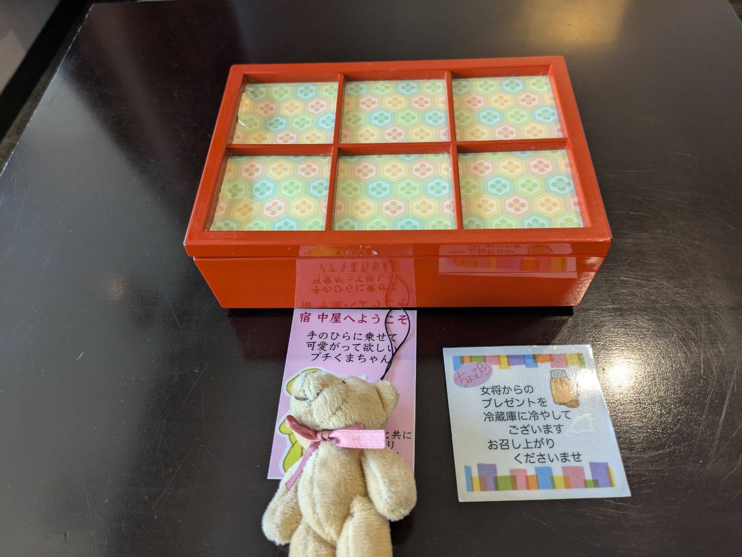 オシャレな箱にお菓子が入っており、くまさんのぬいぐるみはなんとプレゼントでした。