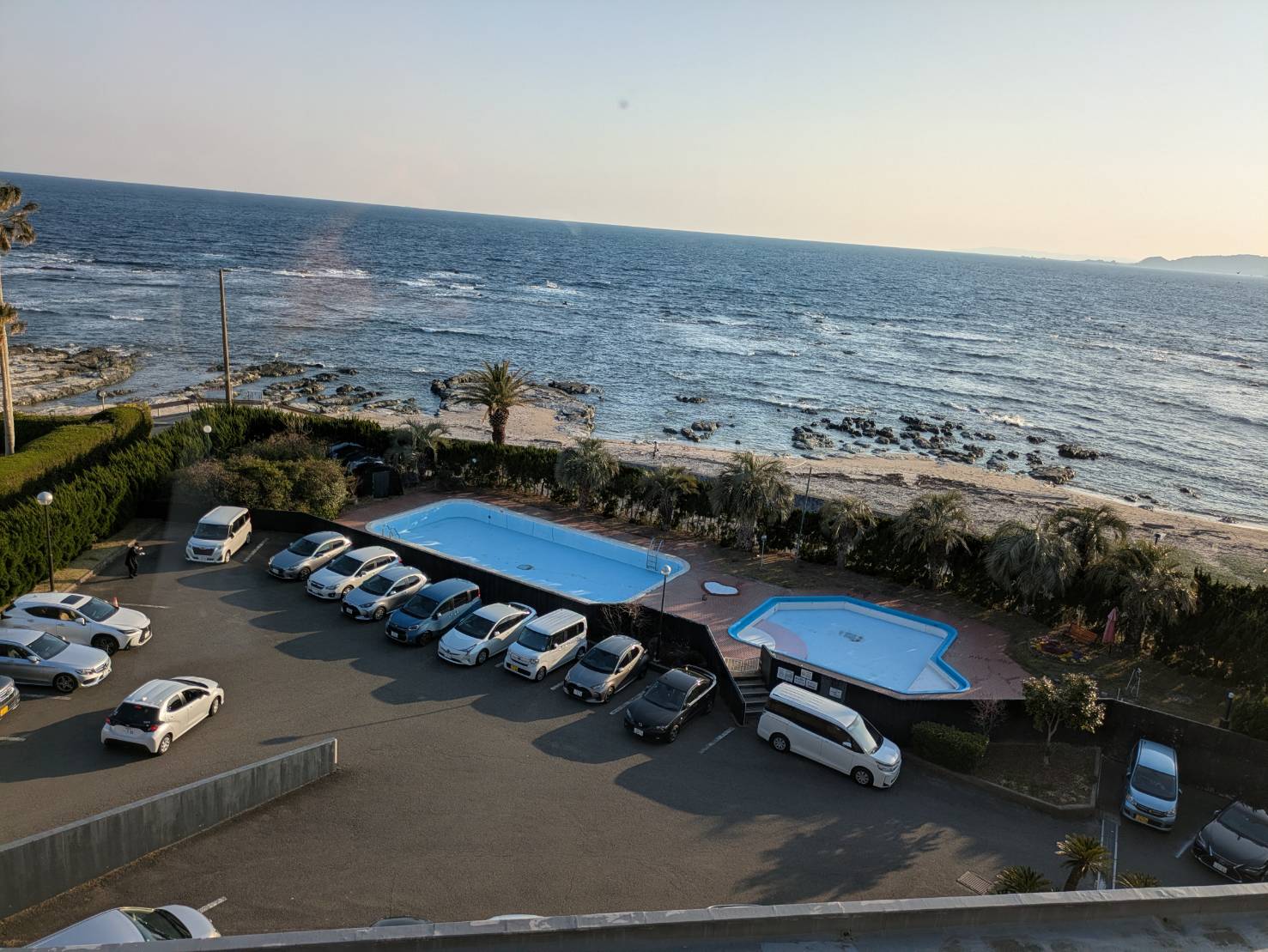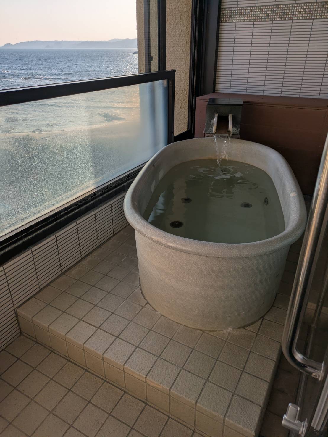 露天風呂はありましたが、大浴場自体が1階にあるということもあり、外から見えないための仕切りのわずかな隙間から海が見えるくらいでした。海を眺めながら温泉に入りたい方は、露天風呂付客室の予約をおすすめします。